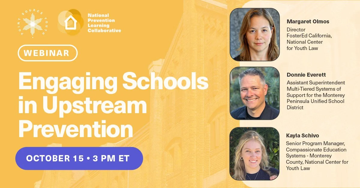 Schools play a critical role in identifying risks early and supporting students before they experience homelessness. This webinar will highlight strategies for partnering with schools to strengthen prevention efforts, featuring insights from the National Center for Youth Law and practitioners from the Monterey Peninsula Unified School District. Join us to learn how communities can work together to create supportive pathways that keep young people stably housed and connected to opportunity.