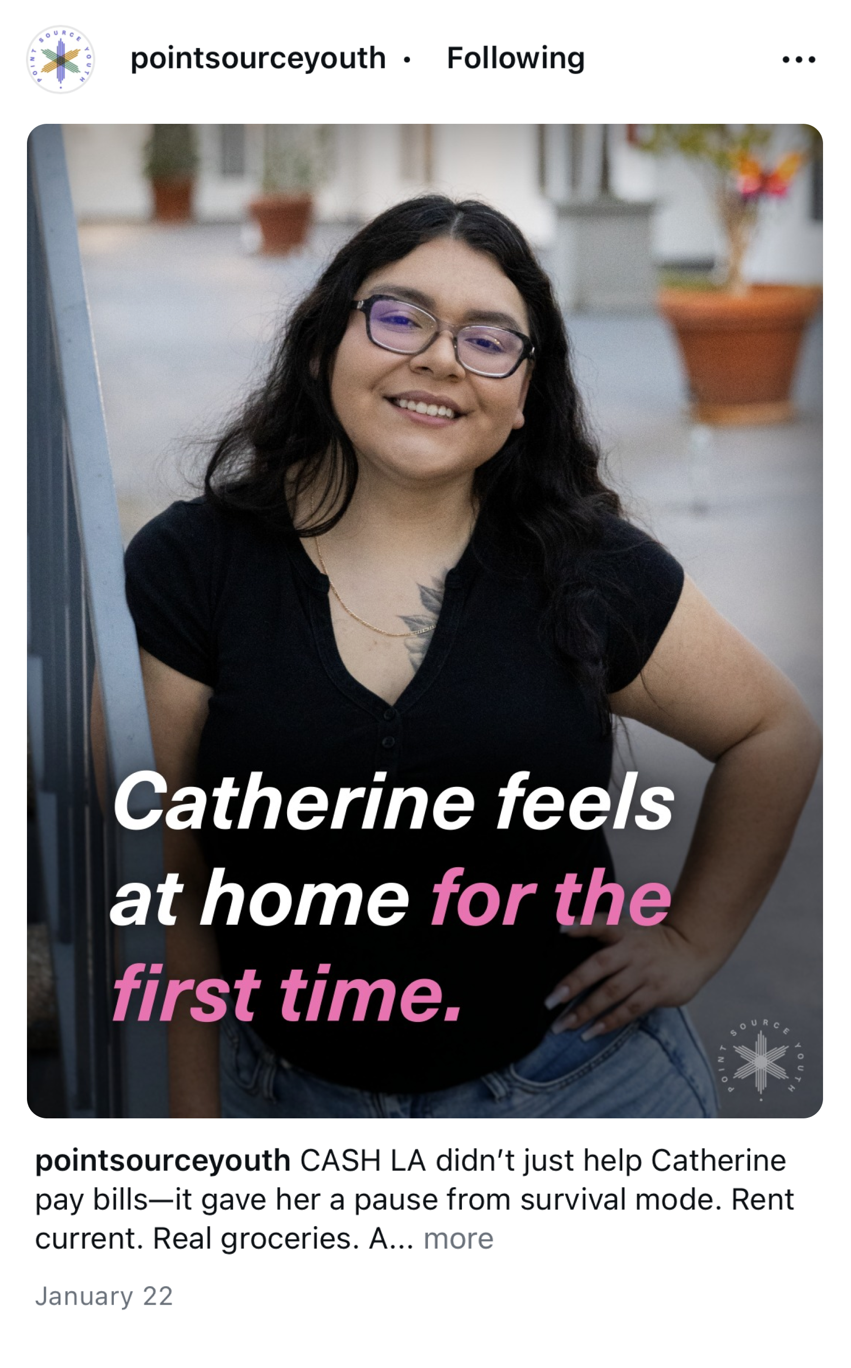 CASH LA is now expanding because the demand is too big and the impact too great. In the stories below, you’ll meet young people like Meah, Bryan, Melane, and Catherine—each with a different path, but the same truth: when you trust young people with flexible support, they use it to stay housed, stay in school, protect their futures, and finally exhale.